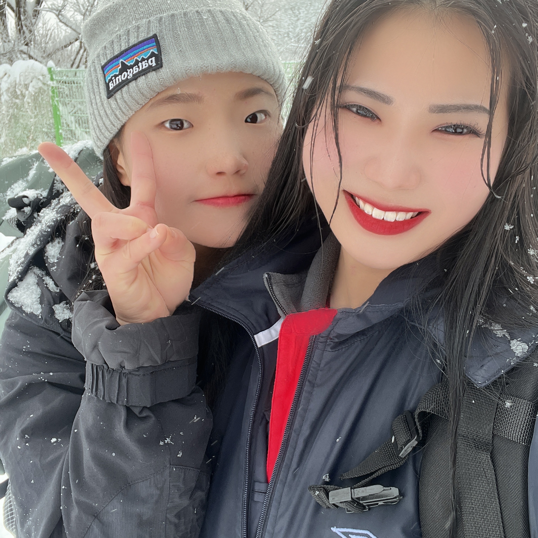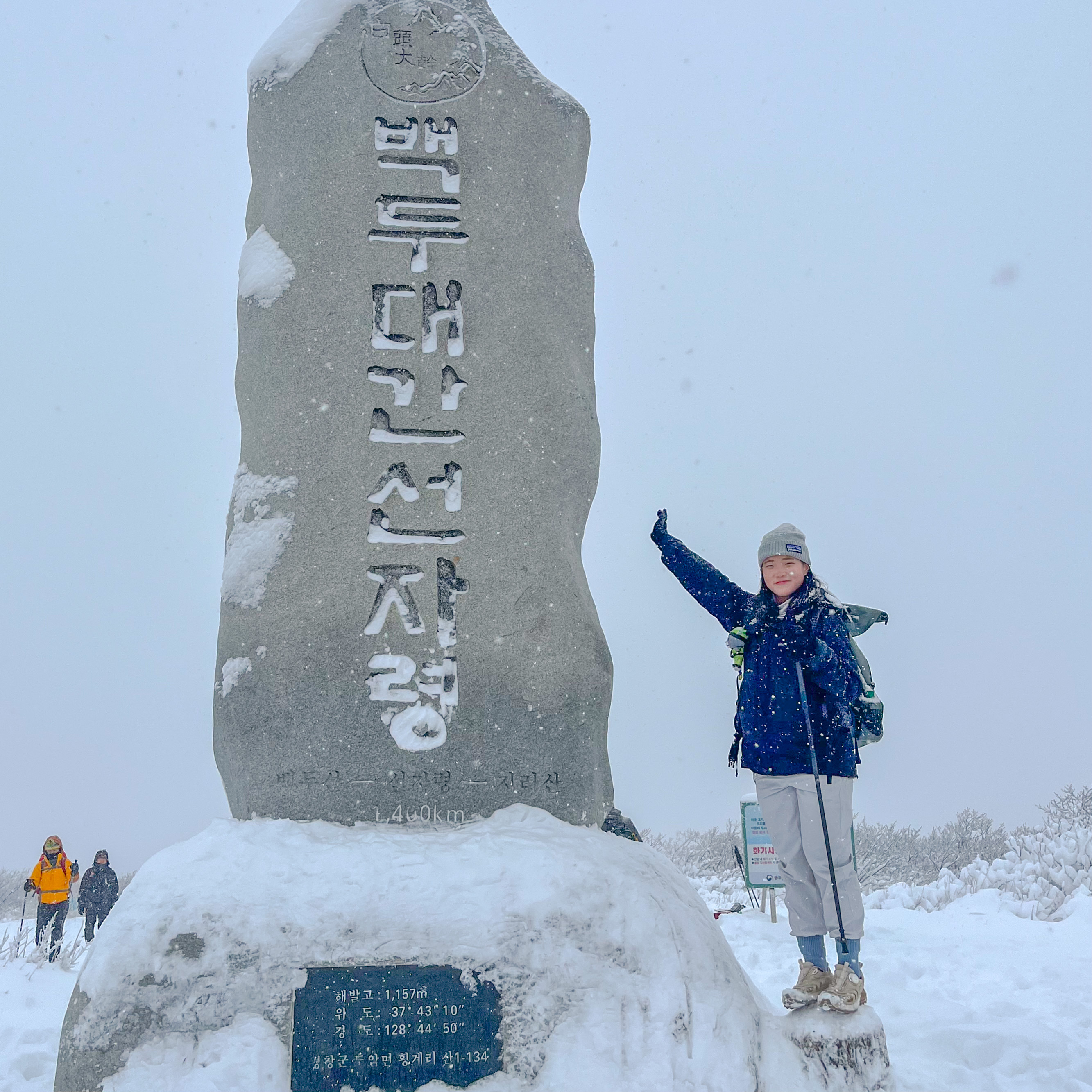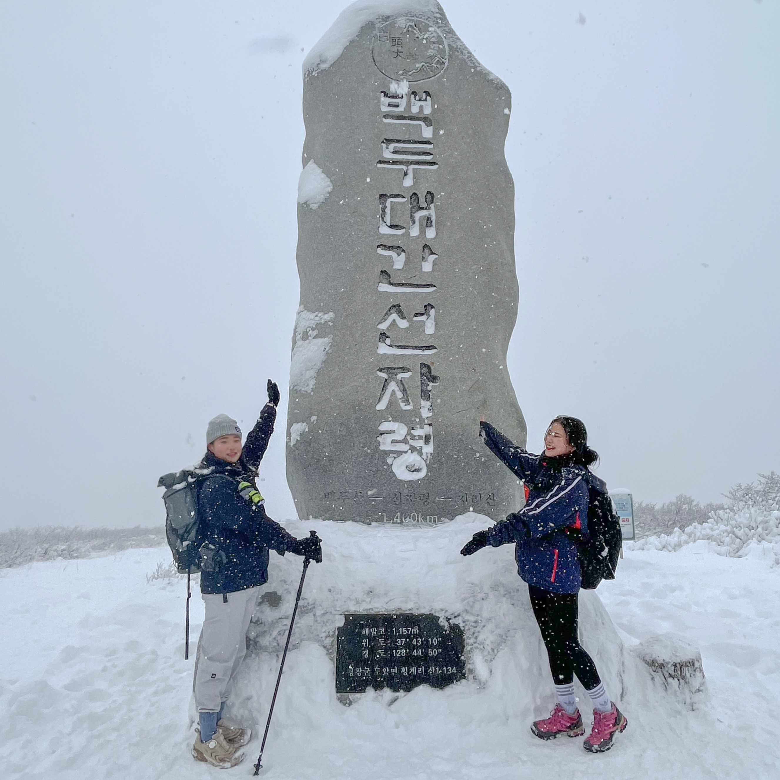 뒤에 계셨던 등산객분이 찍어주신 우리의 사진. 눈을 많이 맞아 머리카락은 얼고 모자 위에 눈이 쌓이고 뒤덮였어도 너무 행복했다.