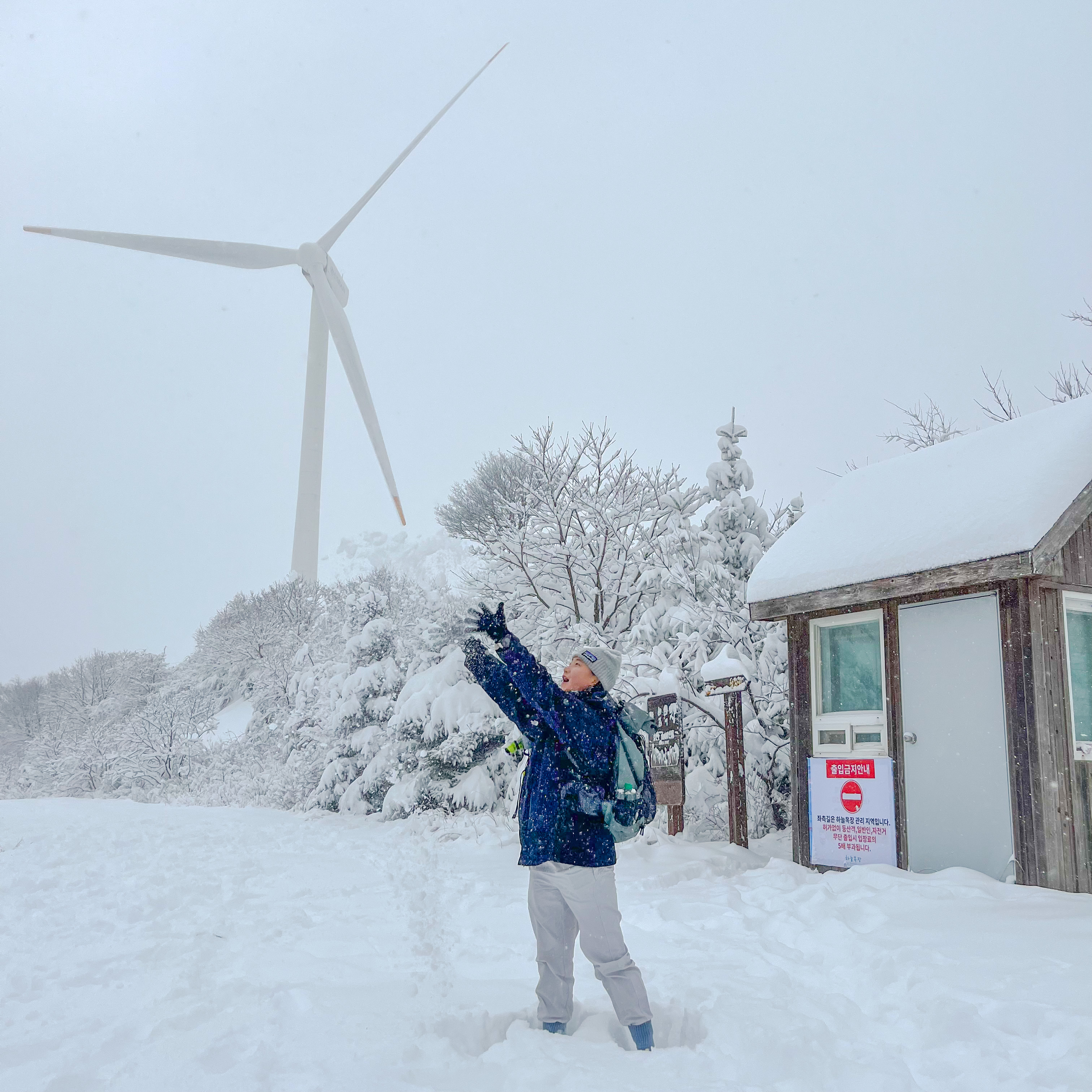 난이도가 어렵지 않은 등산코스였고, 그냥 둘레길 느낌이었다. 등산 초보인 동생도 힘들어하지 않았던 [목장 코스]. 어렵지 않기 때문에 눈이 와도 어려움 없이 올라갈 수 있다. 눈이 오더라도 걱정 없이 갈 수 있는 곳이면서도 눈이 오면 아름다운 겨울 왕국을 보기 위해 꼭 가야하는 곳이 선자령이다.