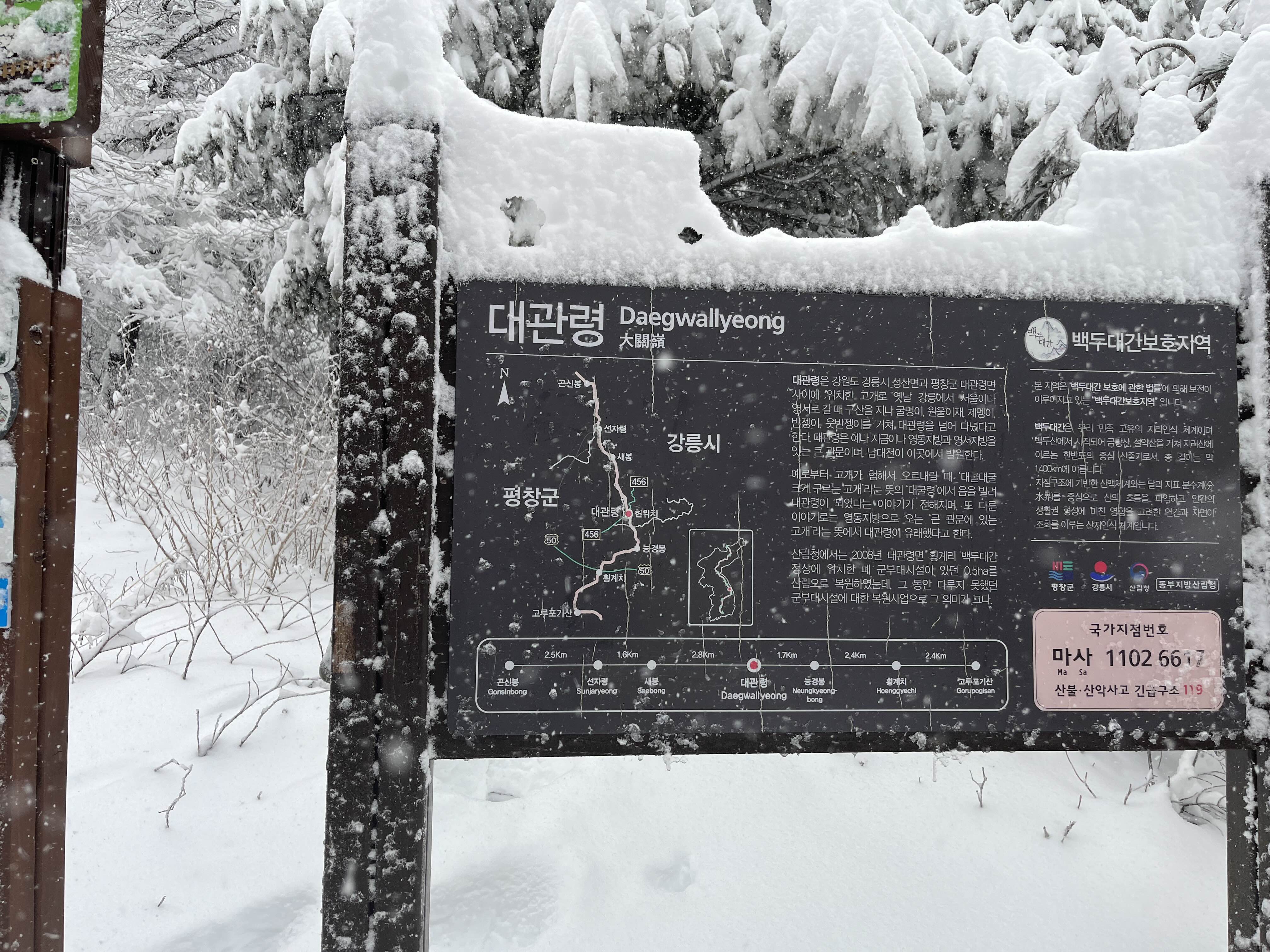 잘 나있는 숲길을 따라 3,00m 정도 올라가다보면 두 번째 표지판을 마주할 수 있다. 이 표지판 옆에는 대관령에 대한 안내판도 나와있었다. 대관령은 영동지방과 영서지방을 잇는 큰 관문이며, 남대천이 이곳에서 발원한다고 한다.